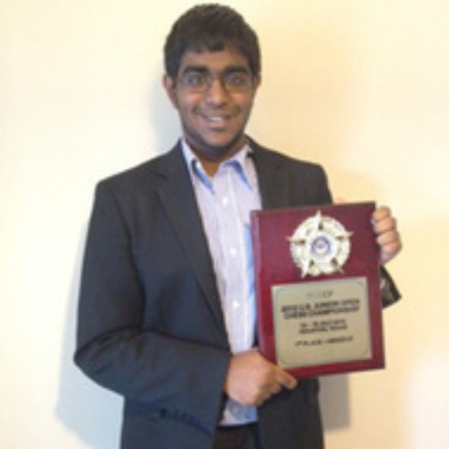 The Chess Academy welcomes “Coach K” Master Karthik Ramachandran, awesome chess player and even nicer person. One of the smartest guys on the planet. Karthik Ramachandran, Business Honors major at The University of Texas carries a triple major and 3.9 GPA with ease. A phenomenal chess player, 2222, simply dominated the under 21 division at The US Jr. Open 2012 and earned the title, Master by crushing the competition. With six masters in the field Karthik, who entered the event with a 2157 rating, finished with a perfect 6-0 score including a 5th Round victory over top-seed Adarsh Jayakumar (2372) and a 6th Round win against NM Jonathan Chiang (2235).